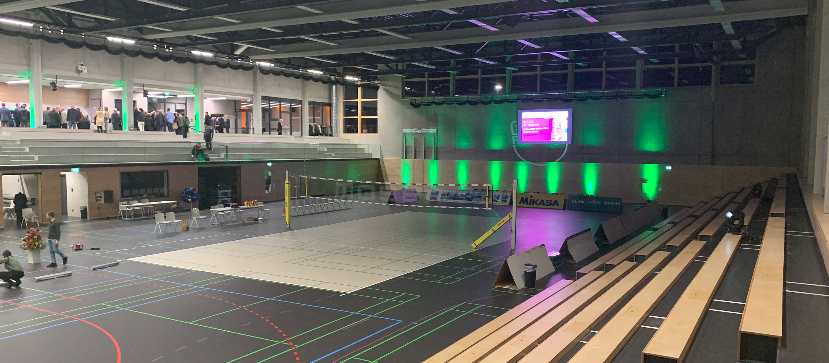 Für die neue Dreifeldhalle (FT 1844) in Freiburg, wurden von uns umfangreiche Installationen vorgenommen. Beispielsweise: Prosound SAA, System Dynacord Promatrix 8000, 3-teilige Sporthalle für Volleyball Bundesliga, 2 Trainingshallen und Nebenräume, Prosoundbeschallung...